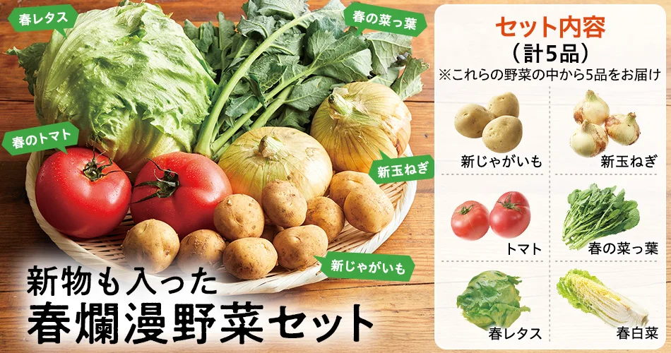 春の訪れを告げる「新玉ねぎ」「新じゃがいも」を楽しめるのは、実はほんの短い期間だけ。この時季だけのみずみずしい春の新物をご堪能ください。特に状態の良いものを厳選してお届けします。今回を逃すと来年まで味わえない、一期一会の鮮度をお見逃しなく!