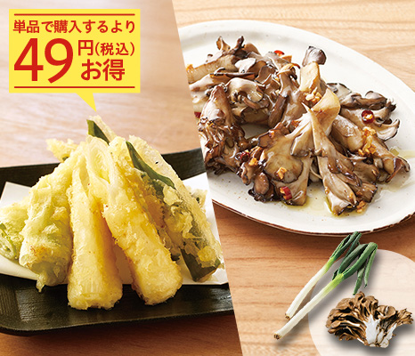 やわらかい岩津ねぎの天ぷらは、サクサク衣の中からとろっとねぎが現れて美味。轟まいたけは揚げても焼いても満足の一皿に。
