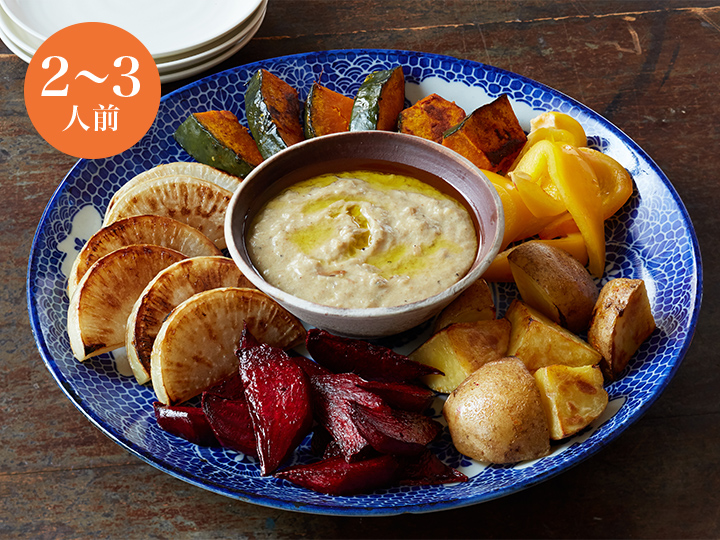 じっくりとグリルして甘みを引き出したビーツや三浦大根を、まいたけの旨みがぎゅっと詰まった手作りソースで召し上がれ。ほくほく甘いとうややかぼちゃなど、野菜がたっぷり食べられます。