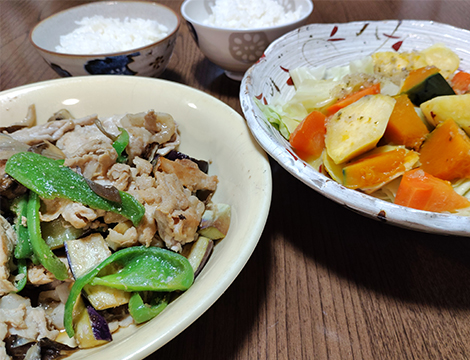火を使わずにメインが完成。中身の彩りも良いぷりっとカツ