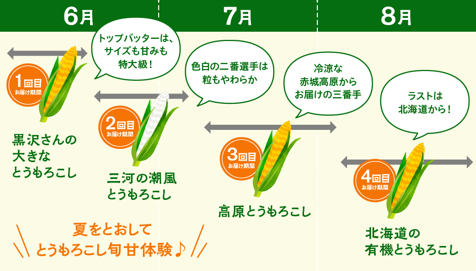 3ヵ月の間に4回、それぞれの品種が一番おいしい時にお届けします。