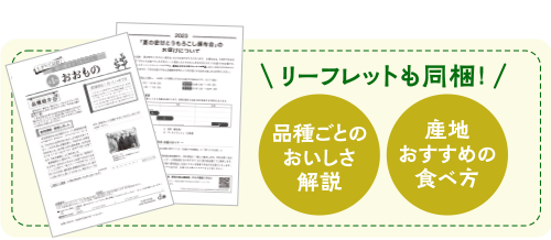 天候などの要因により予定通りに収穫できなかった場合に、お届け予定とは異なる量目・品種・お届け期間でお届けすることがあります。