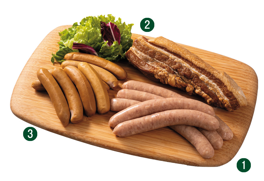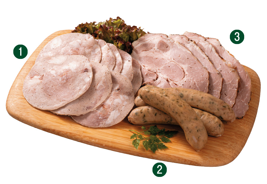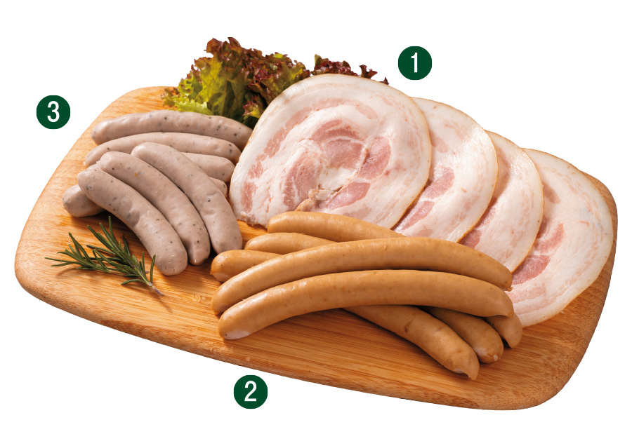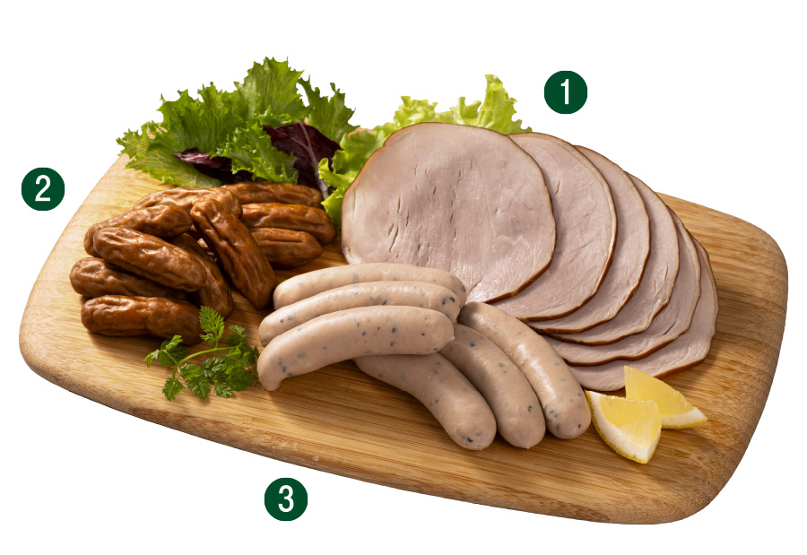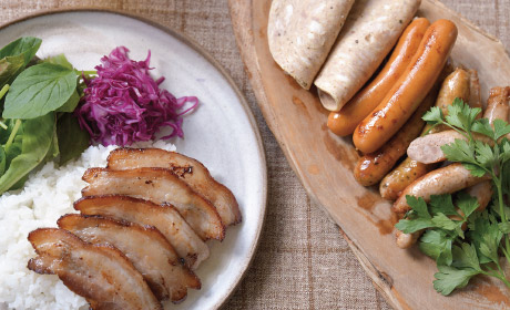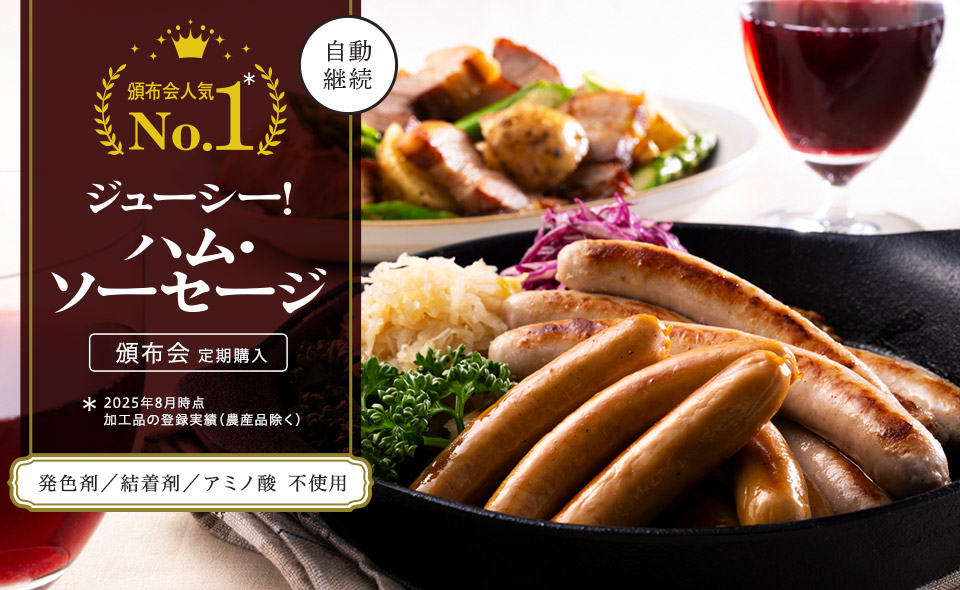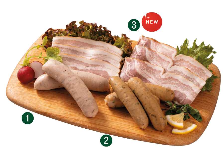 原材料は肉、塩、砂糖、香辛料などと、とてもシンプル。余計なものを入れないことで、豚肉本来の色、形、うまみを感じられる安心で美味しいハム・ソーセージです。