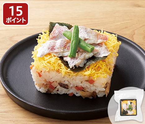 1尾分のレンコ鯛の切り身、ミョウバン不使用の桜の葉を使った春らしいミニちらし寿司です。
