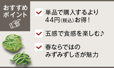人気の春レタスと、甘いスナップえんどう。噛むほどにあふれる春のみずみずしさを、ぜひ生と塩茹でで。