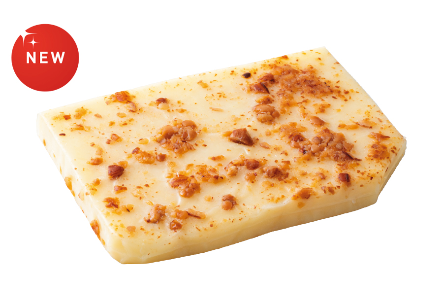 鹿追チェダーをゆっくり熟成し、砕いた素焼きアーモンドをトッピングした香ばしい一品です。