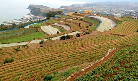 赤土の段々畑が広がる
