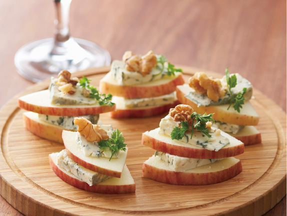 りんごはワインのおつまみにも合うんです。スライスして、お好みのチーズをのせるだけ!