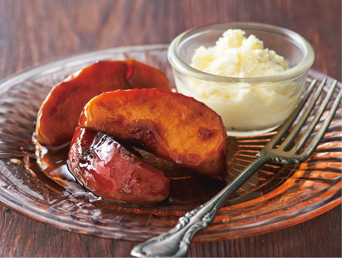 ジューシーなふじは、加熱すると甘みが一層引きたちます。砂糖と煮詰めた、甘く香ばしいキャラメル煮は、トーストにのせても美味♪