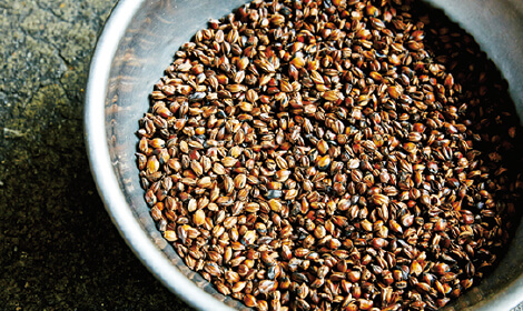 原料は農薬不使用で育てた国産大麦。色の濃い麦は香ばしさと苦味の深煎り。浅めの色の麦はほんのり甘い浅煎り。
