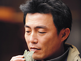 清海苔店代表、成清忠さん。入札前から、できる限り多くのサンプルをチェックする。海苔漁師やその年ごとに変わる海苔の味を熟知しています。