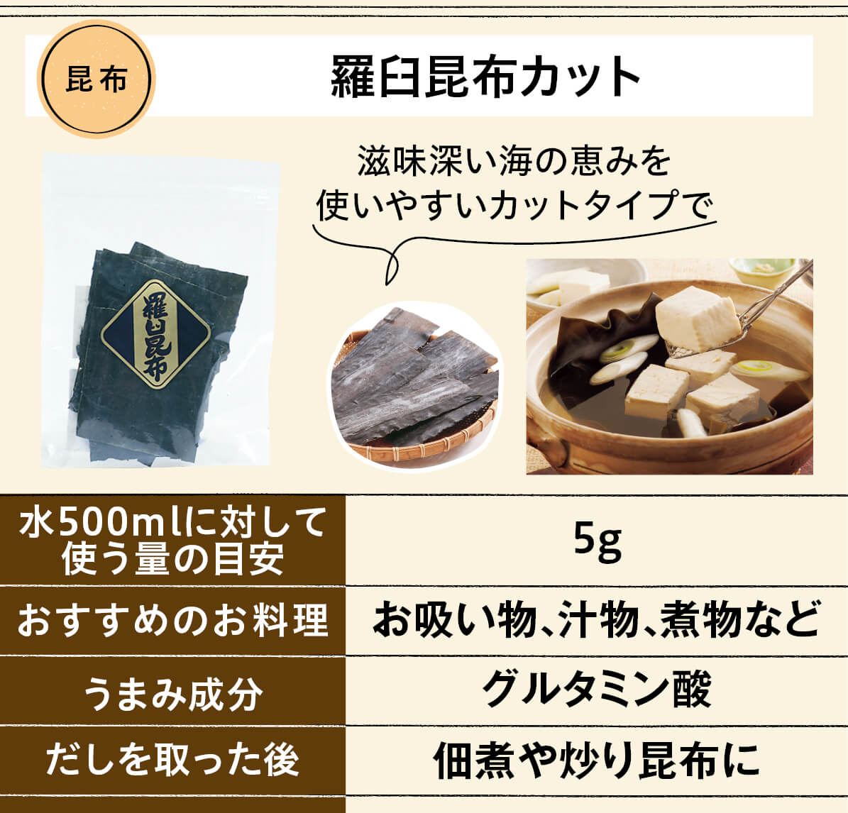 | 「日高昆布(だし用カット)」 | 5g |