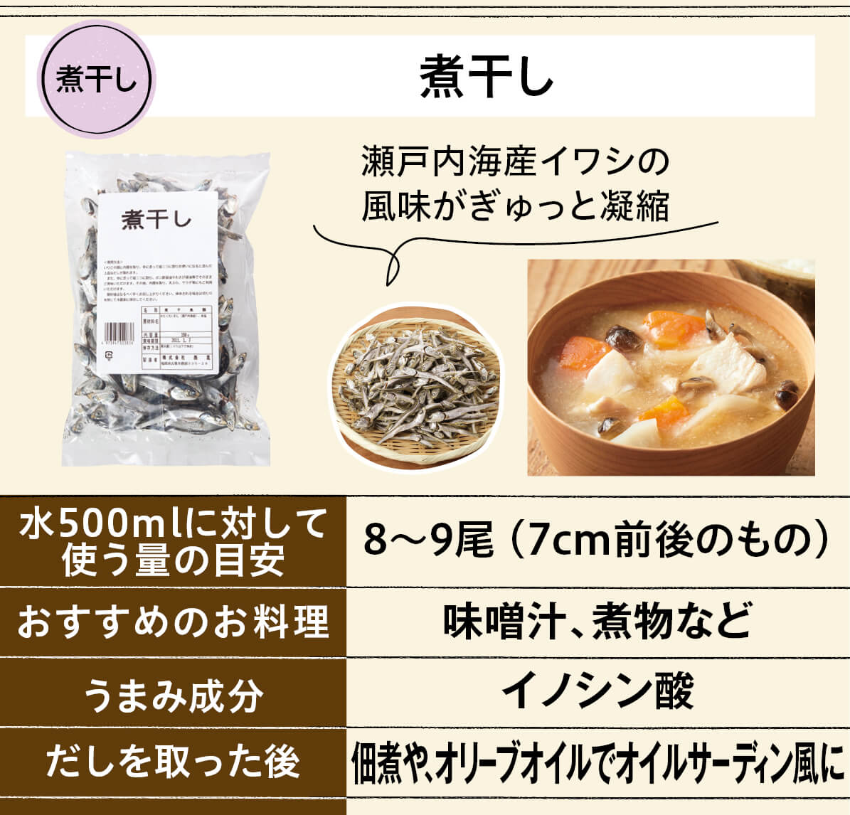 煮物やお吸いもの、麺類など、幅広い料理にどうぞ。使いやすくカット済みで、だしをとった後は佃煮や煮物の具としてもご賞味ください。