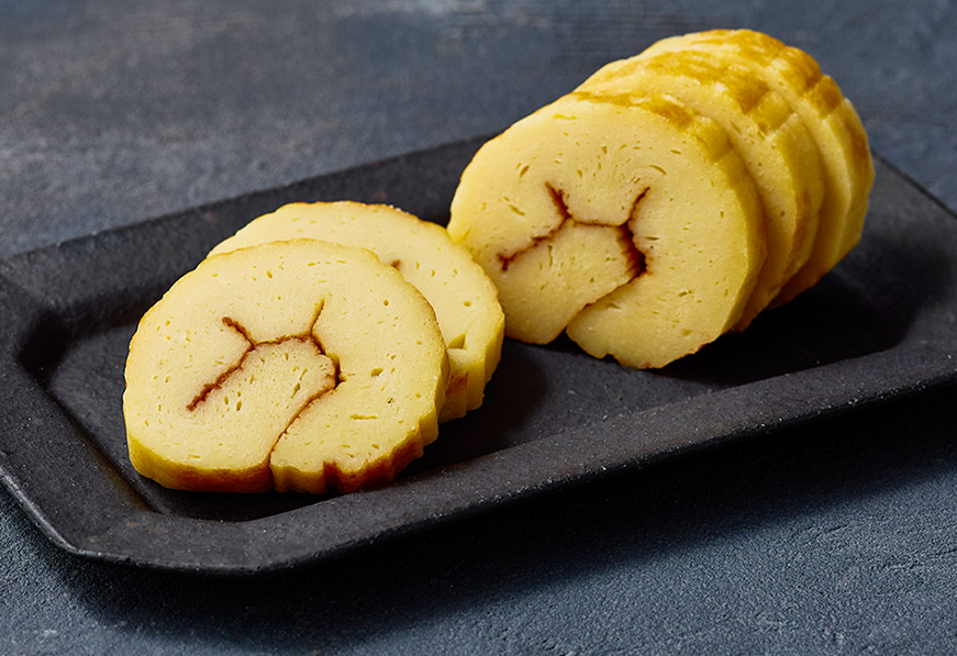 北海道のスケトウダラすり身と平飼卵を使いました。厳選した調味料で上品な甘さと魚のうまみがしっかり味わえる一品。