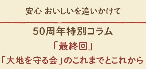 大地を守る会50周年を記念し、大地を守る会の歴史や商品に対するこだわり、産地に対する向き合い方など「安心+おいしい」につながる姿勢をさまざまな角度からご紹介してきた特別コラム。最終回は、大地を守る会の農産品を担当して40年のベテラン社員と1年目の若手社員の対談で、「大地を守る会」のあるべき姿を考えます。