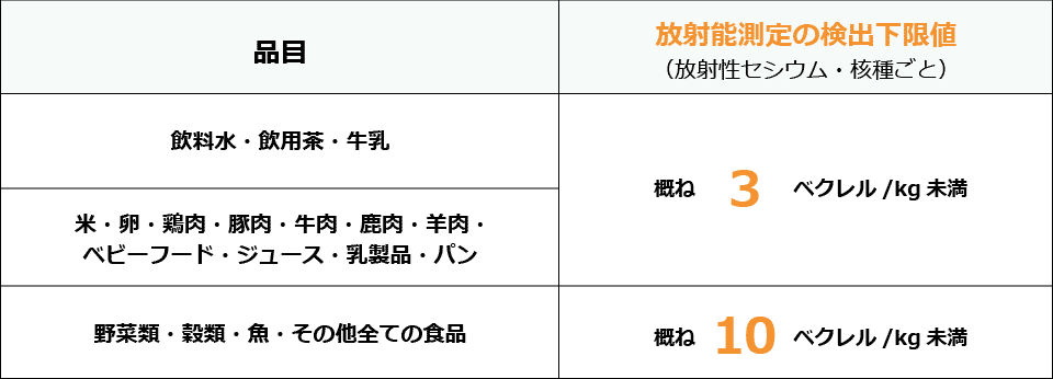 検査対象:米、ベビーフード、卵、牛乳・乳製品、パン、ミネラルウォーター、ジュースなど飲料、豚肉(仙台黒豚会)、鶏肉。